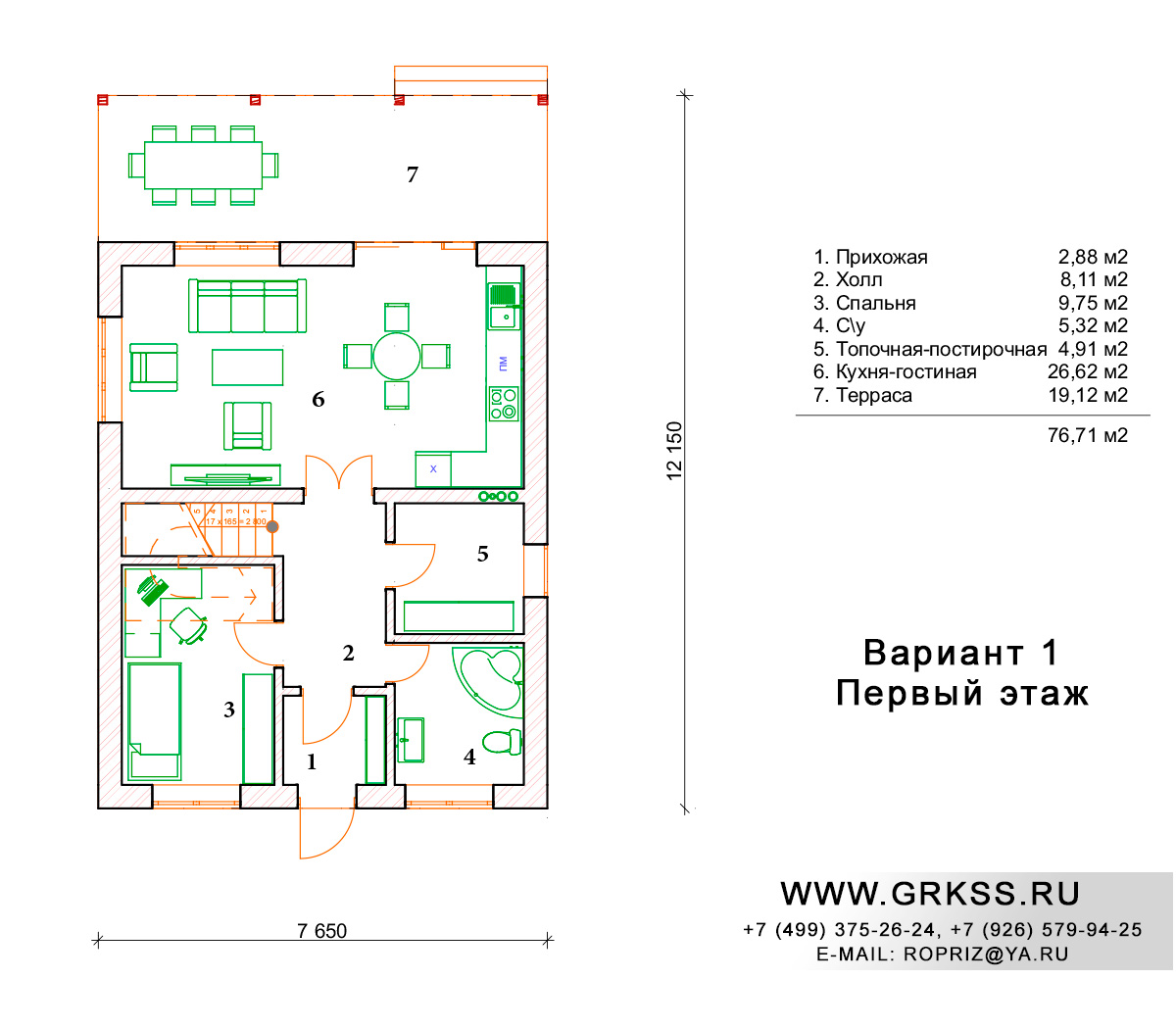 Проект "полуторно-этажного дома" с условным названием "Малый". Небольшой, компактный дом. Общая площадь 128 метров квадратных. Дом без притязаний на роскошь, вместивший в себя все необходимое, и даже больше. Пять спальных комнат, два санузла, кабинет и терраса, все жизненно необходимые пространства вмещены в данный проект. Небольшой, следовательно не дорогой дом, может стать незаменимым загородным другом и в жару и в холод.