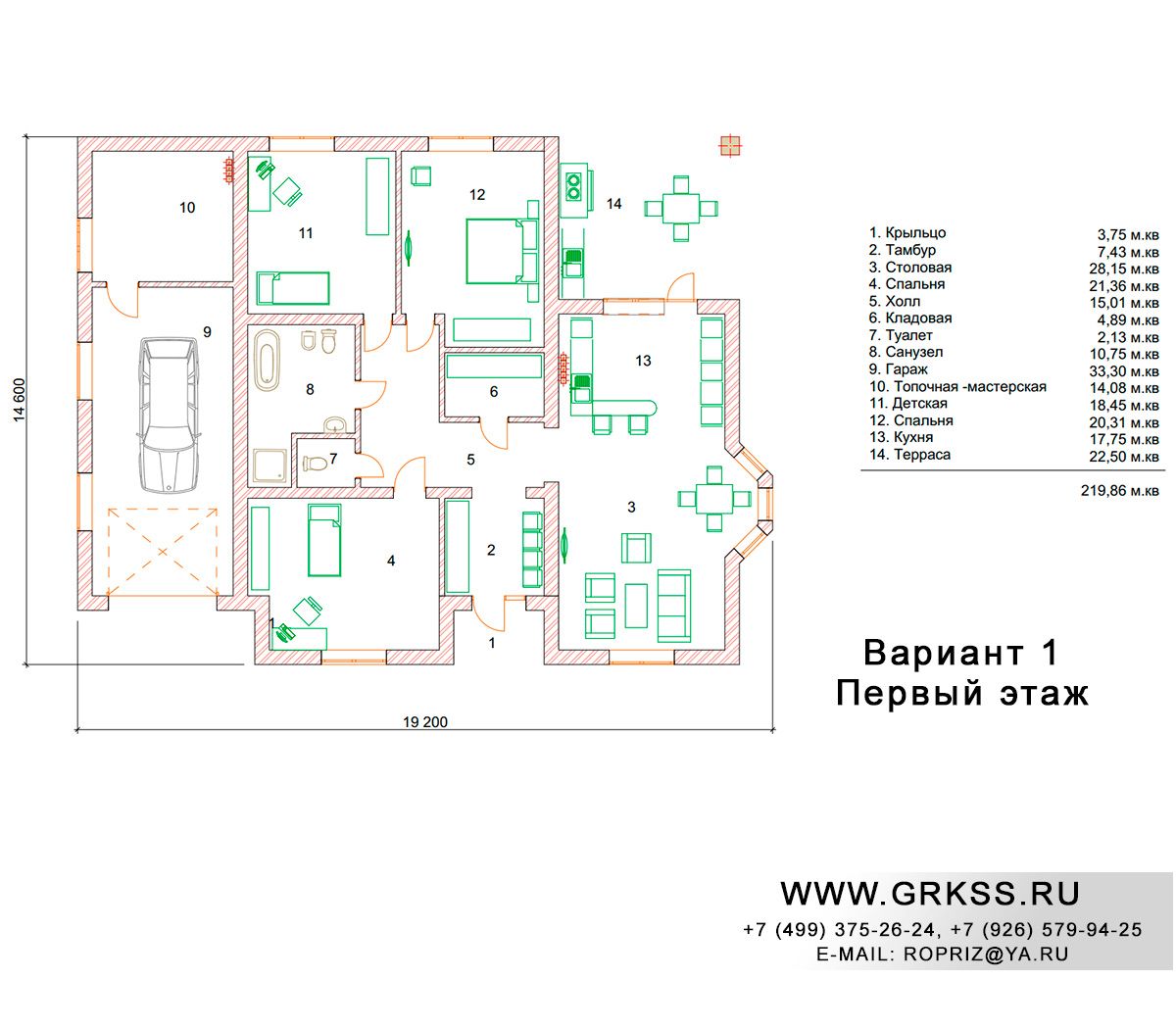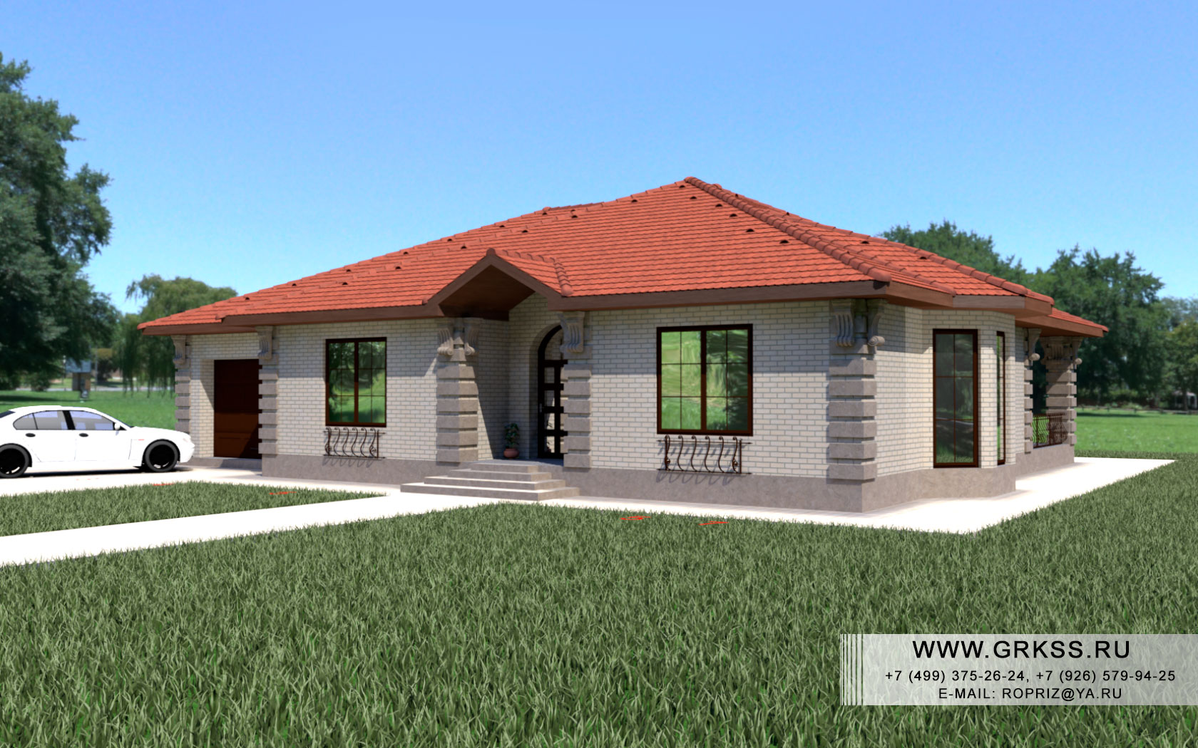 Проект одно этажного дома с условным названием "Горизонт". Еще одно исполнение, по настоящему большого одноэтажника. Большой, функциональный, на все случаи жизни - дом. В проекте предусмотрено три спальных комнаты, гараж и терраса, все это великолепие, приютилось под одной красивой крышей. Для ценителей единения с природой на открытой террасе дома предусмотрен камин. На террасе этого дома можно будет насладиться всеми стихиями природы.