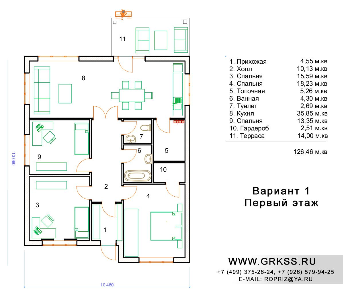 S общ: 126м2