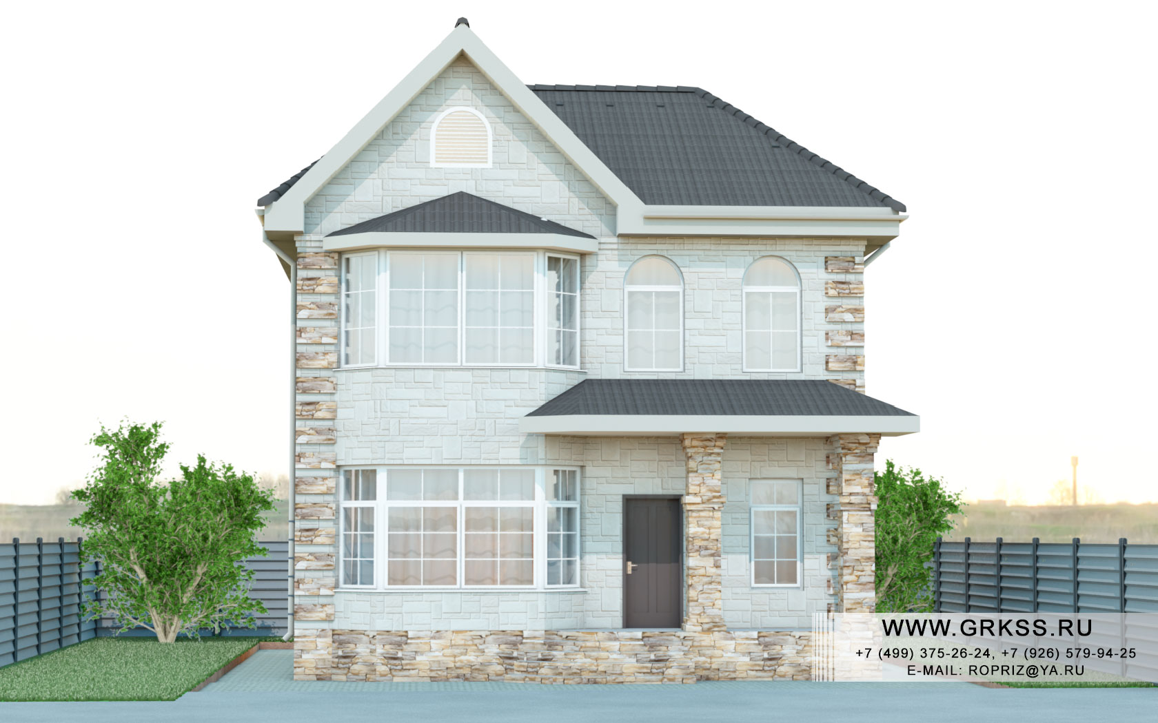 Проект двух этажного дома с условным названием "Шато". Двух этажный дом с тремя спальнями, по фасаду выделенный эркером. Проектом предусмотрена отделка по средствам сочетания природного и искусственного камня. Данный проект подойдет для застройки относительно не большого земельного участка, станет незаменимым спутником по жизни небольшой семье из 3-4 человек.