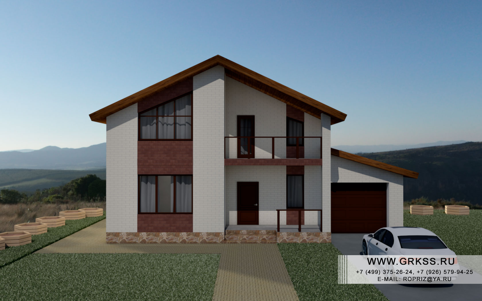 Описание: Проект "полуторн-оэтажного" дома с условным названием "Спутник". Дом в два этажа, со вторым этажом под мансардной крышей, с гаражом на одно машиноместо, просторной кухней в 15 метров квадратных, балконом и террасой. Общая площадь дома 206 квадратных метров. Четыре спальни, интересный внешний вид, а так же вариативность отделки, позволят осуществить в данном проекте, тот дом, который хотите именно Вы.