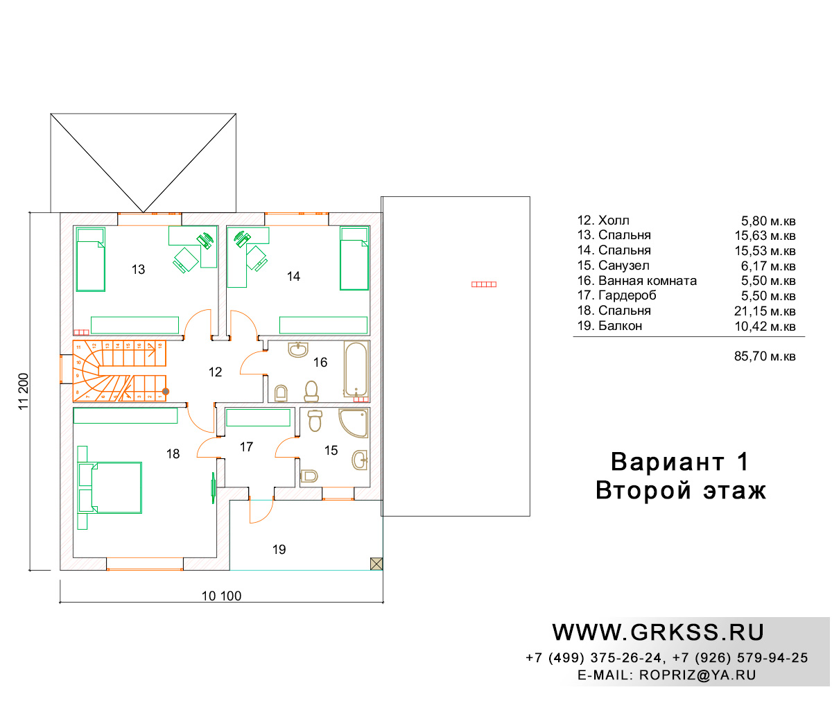 Вариант 1 S общ: 206м2