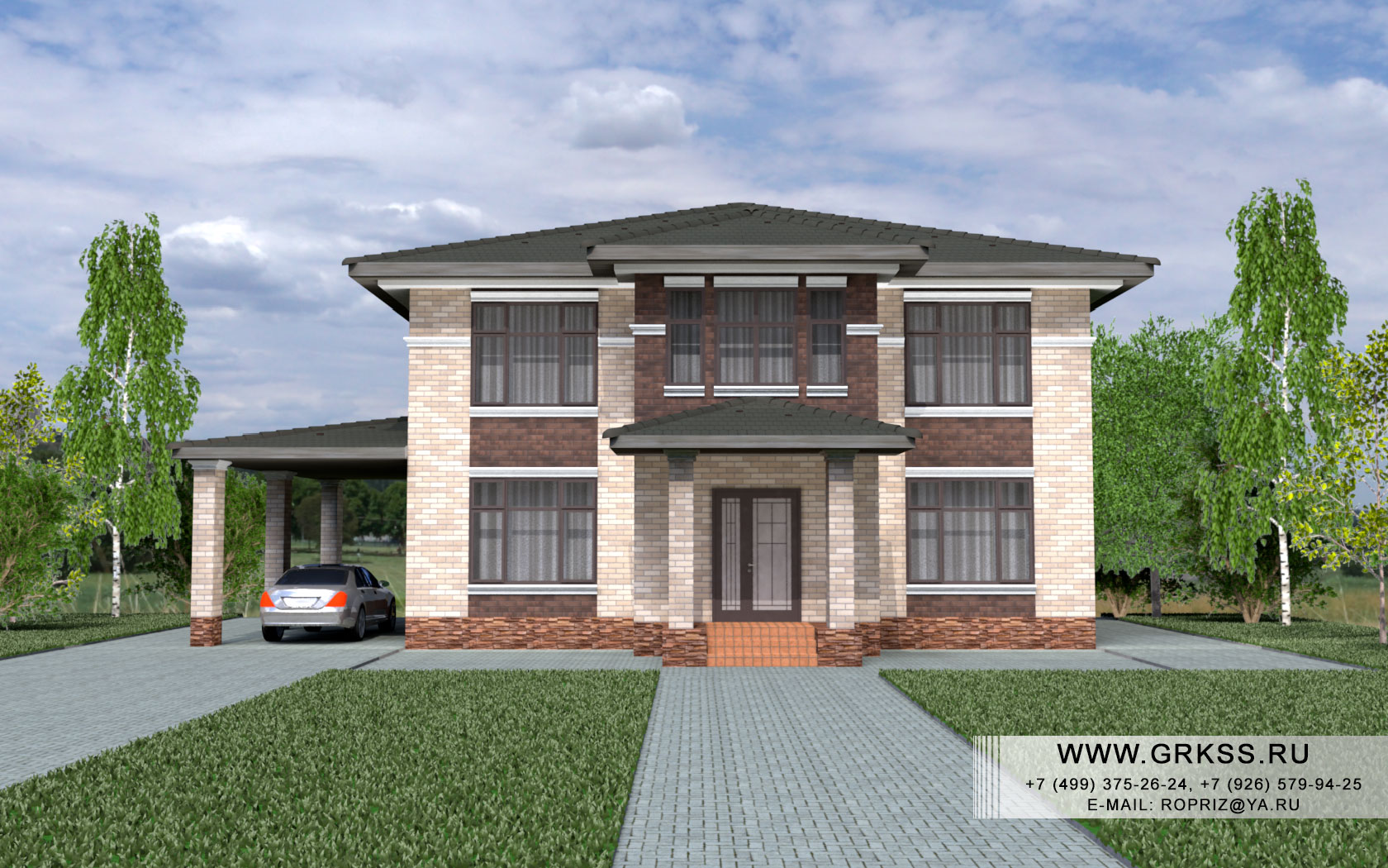 Проект двух этажного дома с условным названием "Самородок". Общая площадь дома 233 метра квадратных. Дом вмещает в себя не много ни мало, шесть спален. При этом в доме предусмотрены различные помещения для хранения вещей, и даже сауна. В проекте имеется навес, который способен укрыть собой два автомобиля. Панорамные окна вписанные в проект, возможны в исполнении в любом цвете, в зависимости от предпочтений и вкуса. Материалы отделки стен, их цвет, исполнение и форма, могут быть любыми, мы готовы обсудить все.