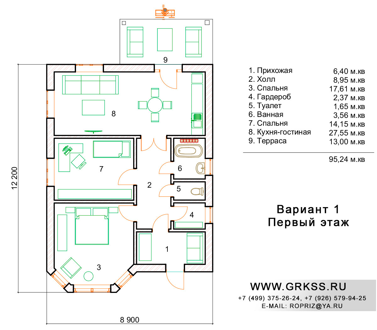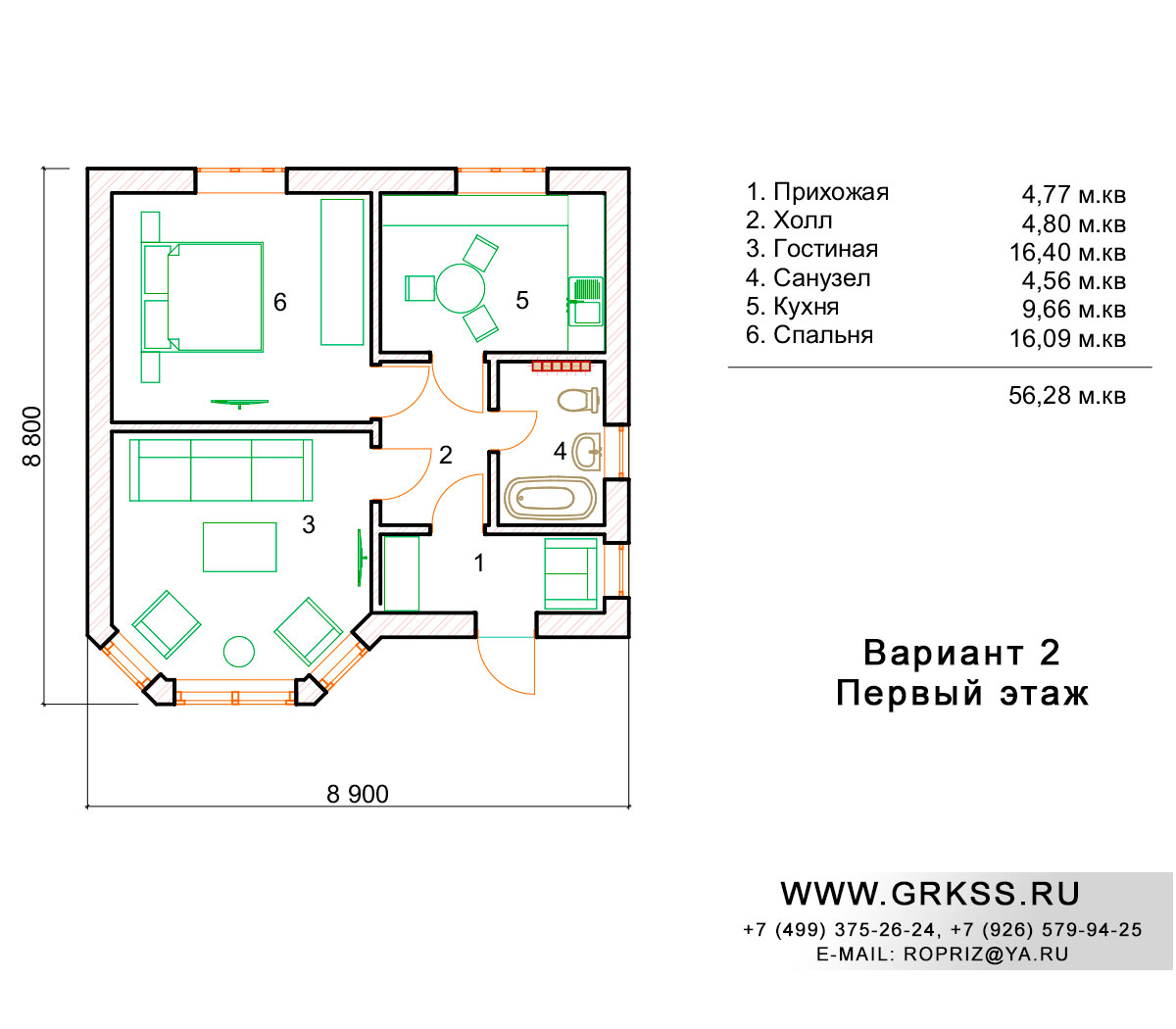 Данный дом, в силу относительно не больших размеров, обладает низкой стоимостью, но при этом, благодаря использованию современных материалов, обладает такими не заменимыми качествами, как: долговечность, надежность, низкая стоимость эксплуатации. Размеры данного дома варьируются в зависимосте от требований и пожеланий Заказчика. В основу данного дома заложено два возможных размера - это "8,8 х 8,9 м. и 8,9 х 12,2 м., общей площадью 56,28 м.кв., и 95,24 м.кв. - соответственно. В проекте данного дома заложено использование таких материалов как: пеноблоки с наружной отделкой выполненной облицовочным кирпичом. Проект данного дома подойдет для круглогодичного, комфортного проживания. Используемый стеновой материал данного дома, сохранит тепло зимой, и создаст оптимальные условия для жизни в теплое время года.