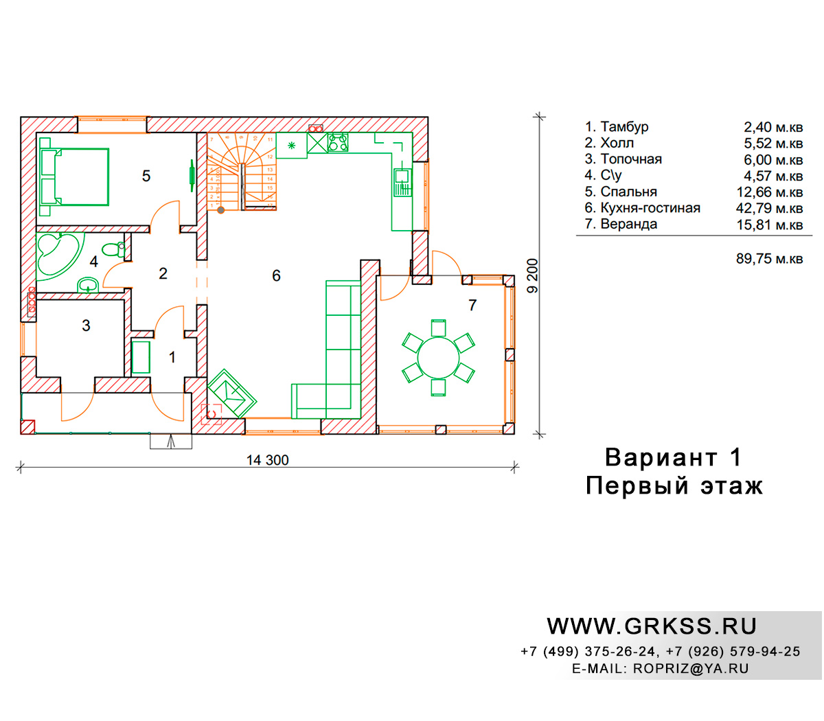Проект полуторно этажного дома с условным названием "Крокус". Большой, красивый, функциональный дом, включивший в себя балкон, закрытую веранду и огромную по своим размерам кухню-гостиную. В данном проекте помещение топочной имеет отдельный вход, что представлено на суд зрителя в демонстрационных целях, по желанию Заказчика, мы можем изменить размеры и конфигурацию любого помещения данного проекта. Варианты исполнения, отделки так же могут стать предметом обсуждения, мы готовы воплотить любое Ваше видение будущего дома.