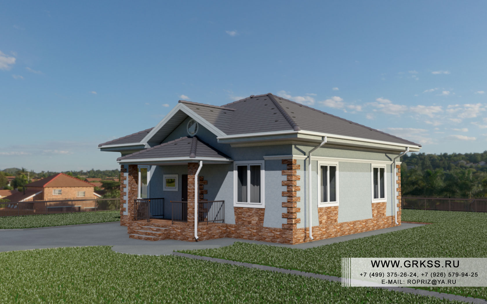 Проект одно этажного дома с условным названием "Василек". Небольшой, но красивый и в то же время достаточно функциональный, одно этажный дом. Не обычный цвет окраски данного дома, может стать не только красивой картинкой на экране Вашего монитора, но и стать изюминкой Вашего земельного участка. При проектировке данного дома, как стеновой материал - рассчитан кирпич. Кирпичный дом как и любой другой имеет свои достоинства и недостатки. Например к недостаткам можно отнести большую стоимость работы и затраты на покупку материала, а так же капитальность устраиваемого для такого дома фундамента. Но, при этом, как можно оценить такие качества как: надежность и долговечность? Более того, безпроблемность эксплуатации и как следствие отсутствие затрат на содержание капитальной части такого дома переоценить не возможно. В любом случае, выбор остается за Вами, ну а мы, в свою очередь, оставляем за собой право попробовать уловить настрой Ваших ожиданий в ощущениях, и предложить Вам его реализацию, в материальном исполнении.