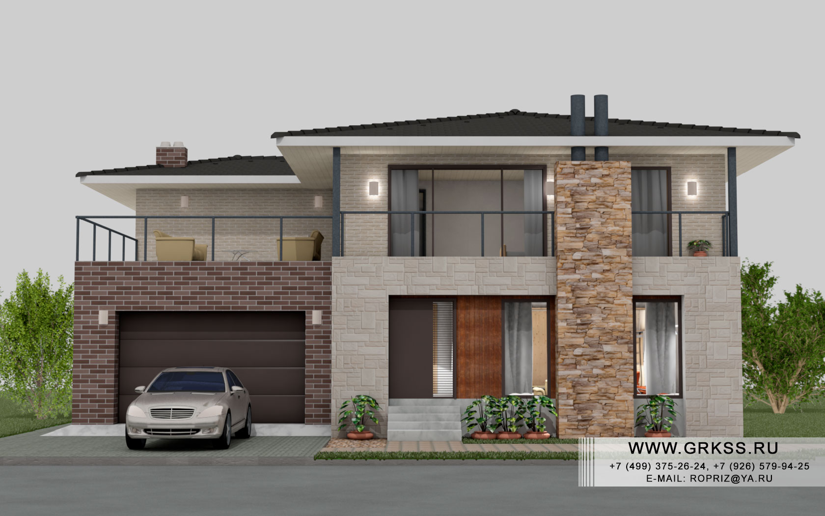 Проект двух этажного дома с условным названием "Гостеприимный". Современный, большой дом, общей площадью 298 метров квадратных. Так называемой "изюминкой" данного дома, по мимо его размеров, является его открытая терраса, расположившаяся на крыше гаража. Огромные окна предусмотренные проектом, делают данным дом, светлым и уютным. Материалы отделки, их расцветка, и комбинация могут использоваться любые, в зависимости от желаний Заказчика.